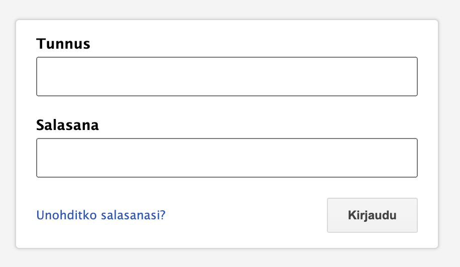 Sisäänkirjautuminen tunnuksella ja salasanalla: