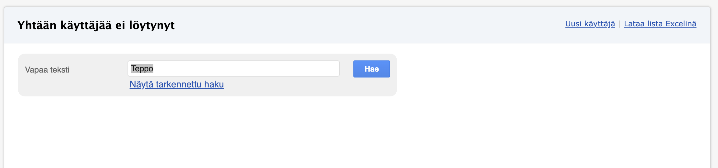 Käyttäjät - Olemassa olevaa käyttäjää ei löydy