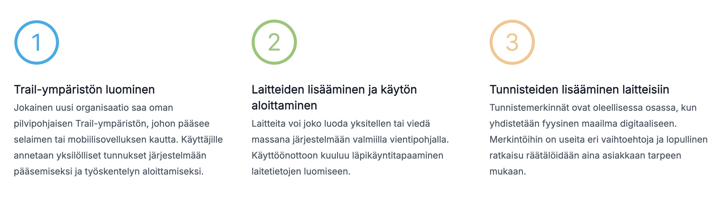 Trailin käyttöönotto koostuu kolmesta päävaiheesta: