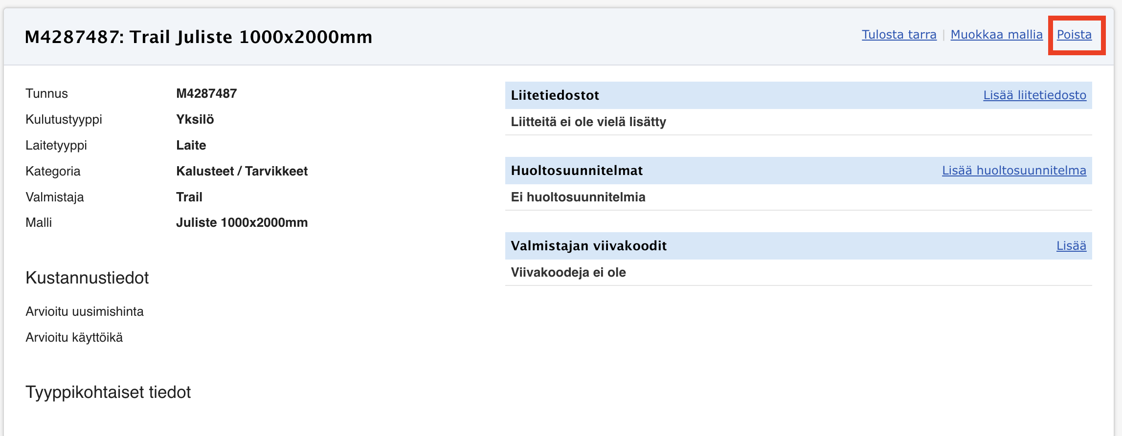 - Vaihtoehtoisesti voit poistaa mallin suoraan mallikortilta