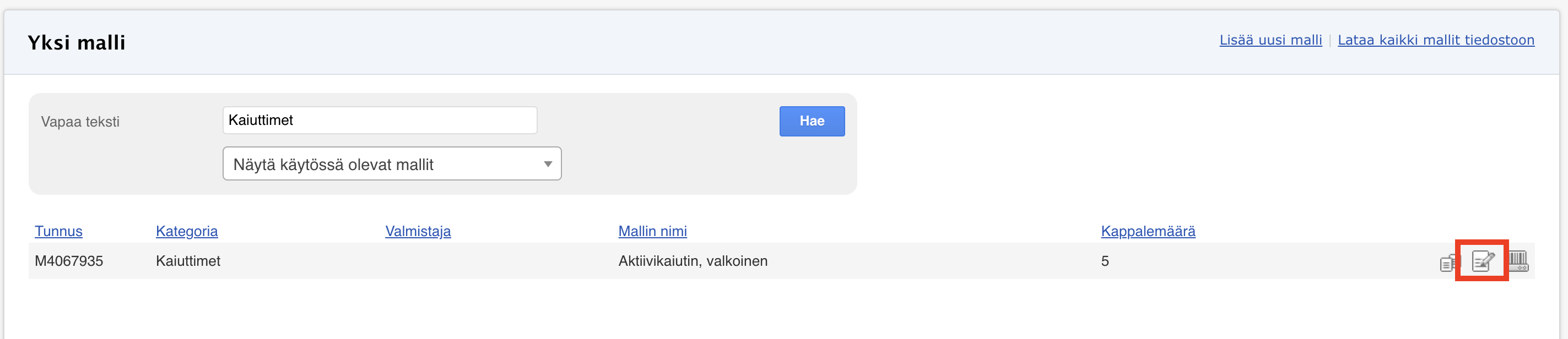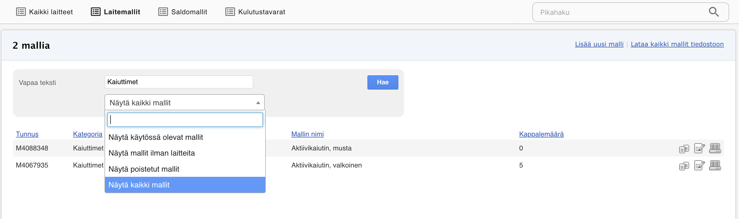 - Näytä kaikki mallit - Kaikki aktiiviset ja poistetut mallit