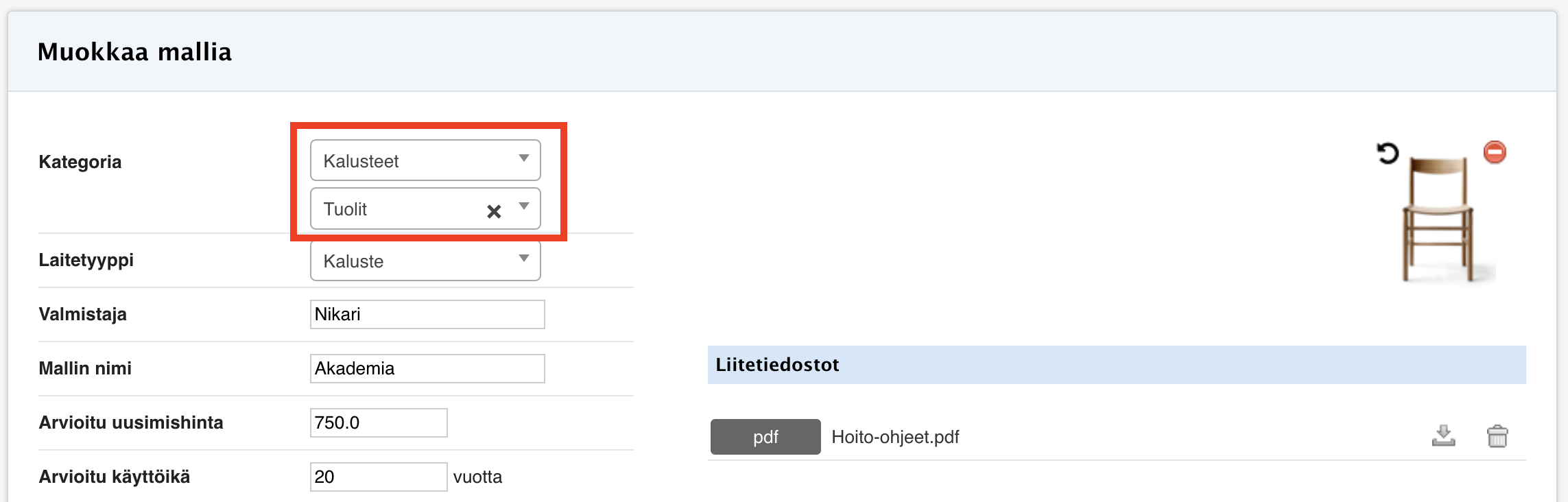 - Kategoria - valitse mallia kuvaava kategoria pudotusvalikosta