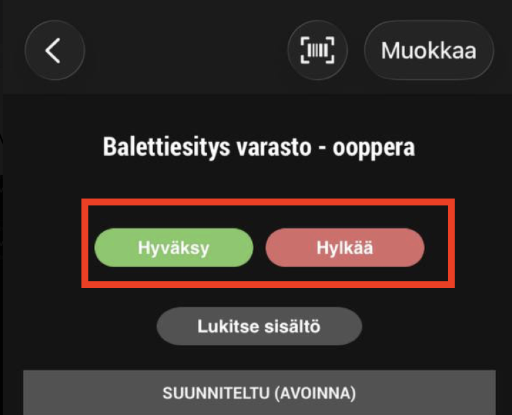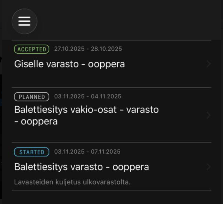 Kuljetuksen voi hyväksyä joko selaimella tai mobiilissa. Hyväksyntä edellyttää kirjoitustason oikeudet kuljetuksiin.
