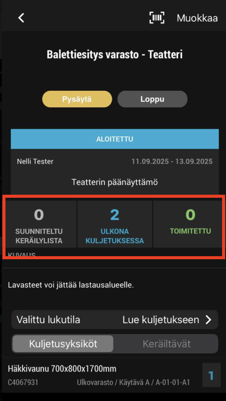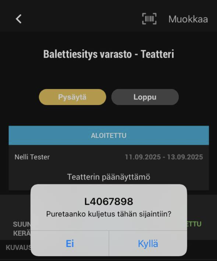 - Paina Loppu, kun haluat päättää kuljetuksen kokonaan.