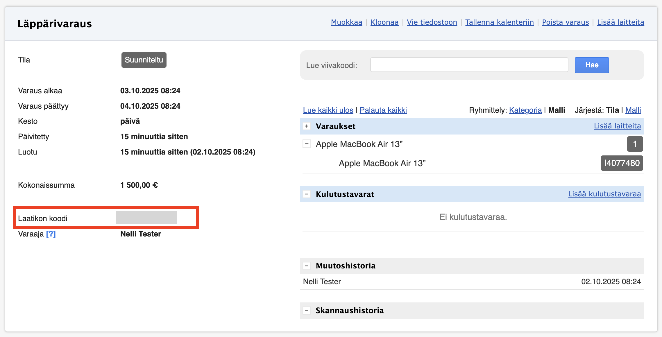 - Varaus päivittyy automaattisesti, jolloin laite näkyy varattuna.