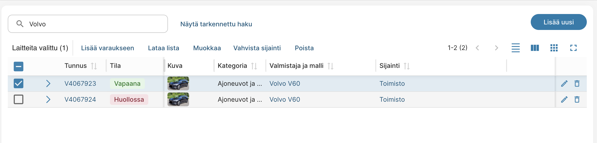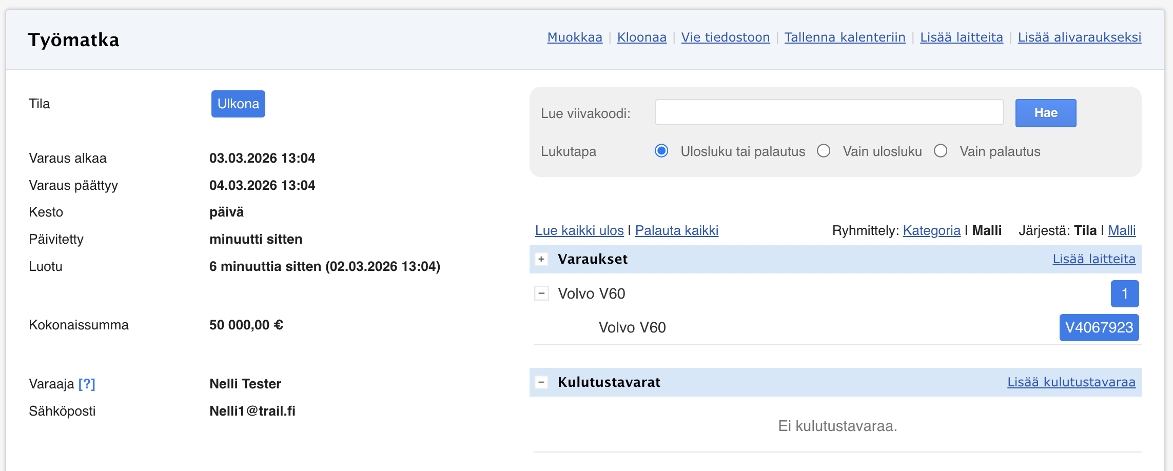 - Laite on nyt lisätty varaukseen.