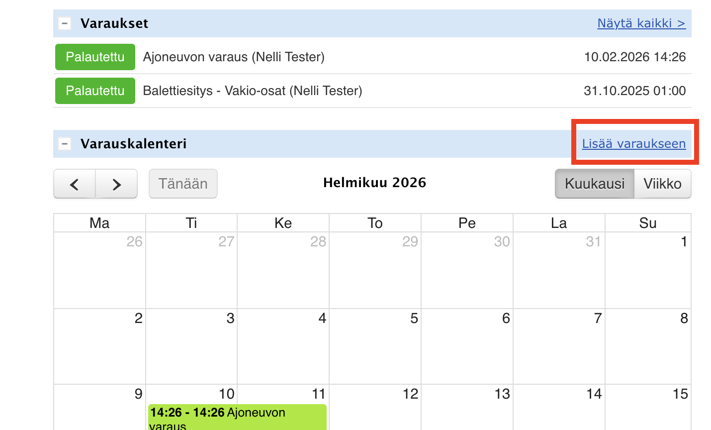 - Siirry kohtaan Varauskalenteri