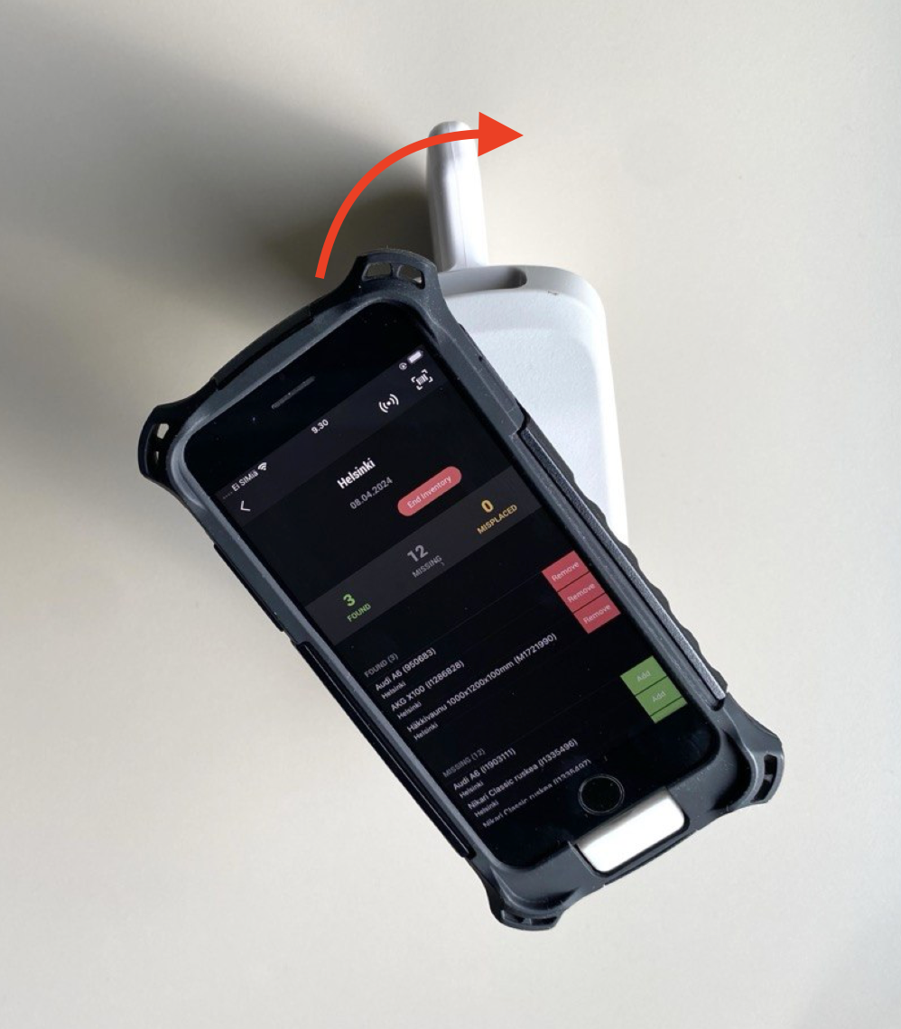- Aseta iPhone AsLock-kiinnitysosaan.