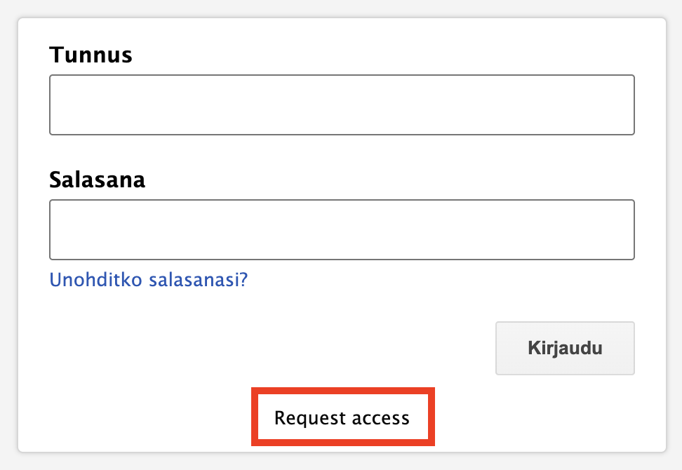 Huom! Jos organisaatiossanne on käytössä kertakirjautuminen (SSO), erillistä käyttöoikeuspyyntöä ei tarvita. Organisaation SSO-käyttäjälistaan kuuluvat käyttäjät voivat kirjautua Trailiin suoraan omilla kertakirjautumistunnuksillaan.