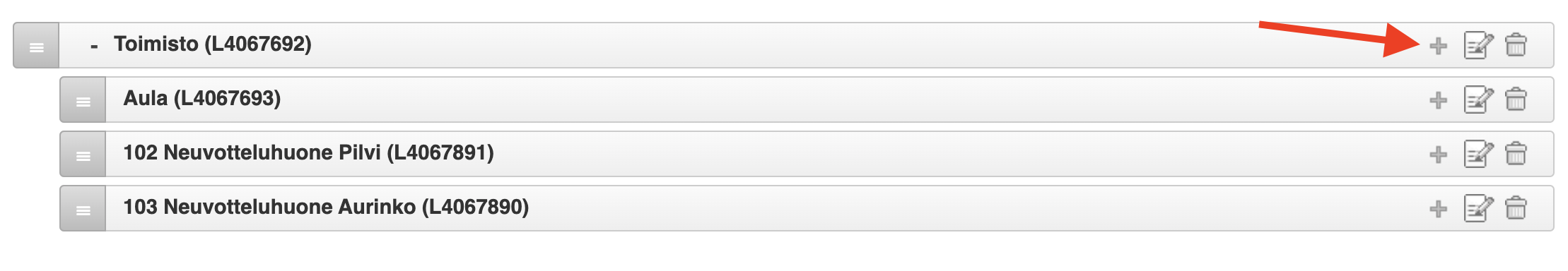 - Ylätaso: Valitse mihin sijaintiin tila kuuluu.