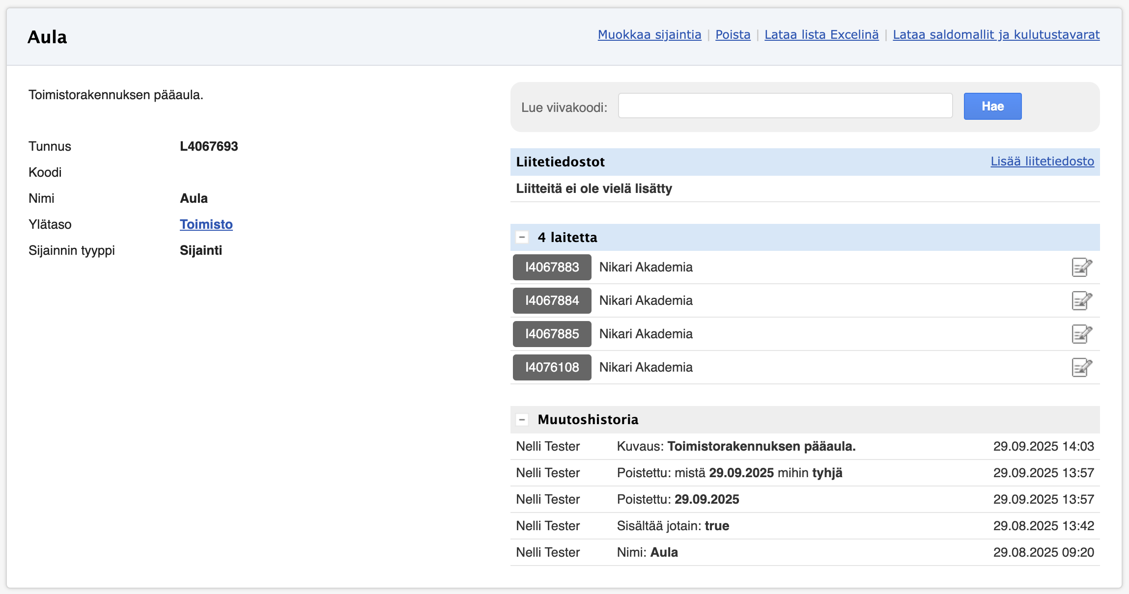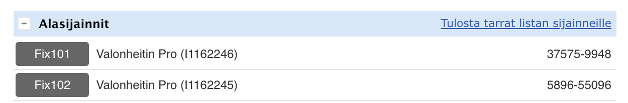 - Tulostaa sijainnille tarran (jos käytössäsi on tulostusmahdollisuus).