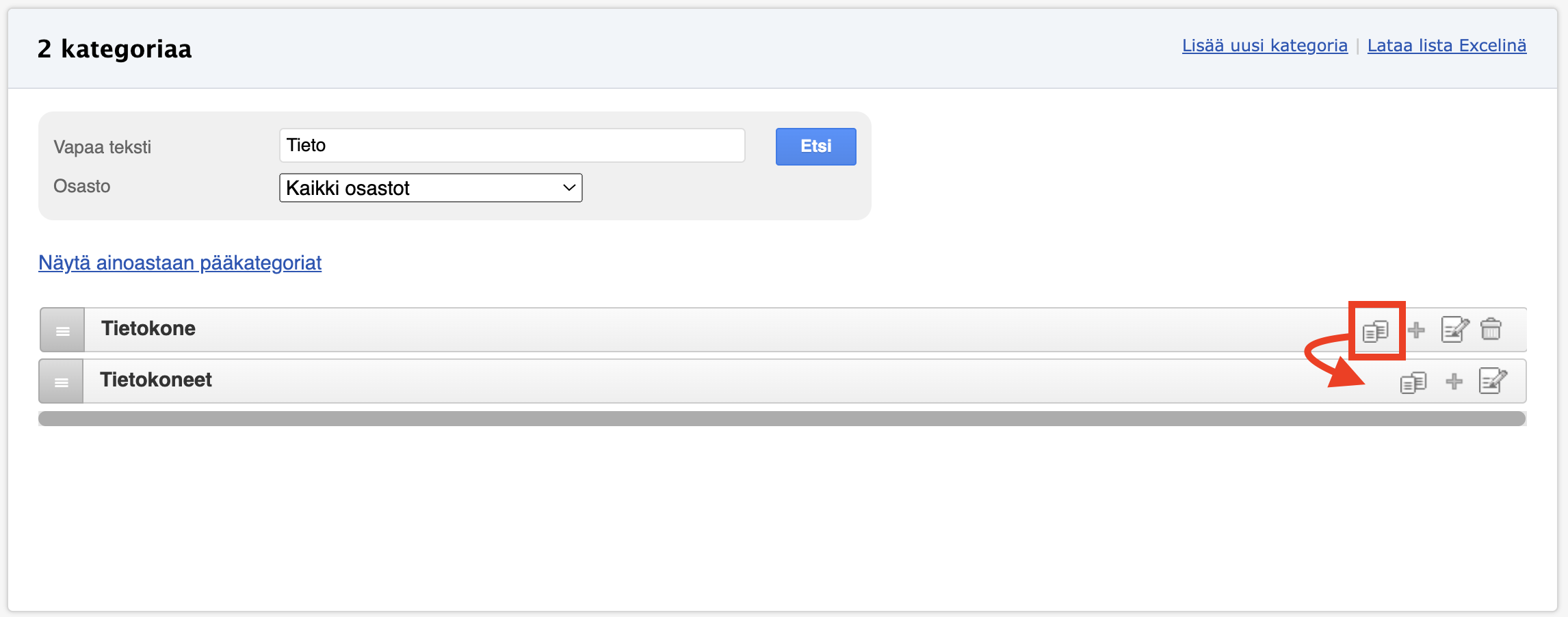 - Klikkaa ylimääräisen kategorian vieressä näkyvää kaksi paperi-ikonia.