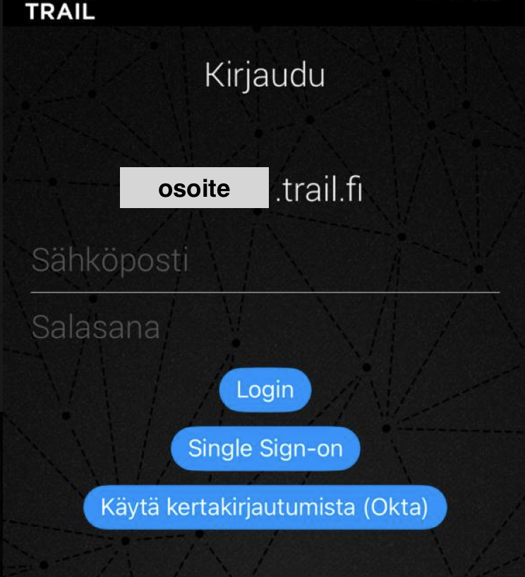 - Tämä ohje opastaa kuinka Trail-mobiilisovellukseen kirjaudutaan.